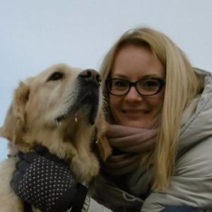 Prywatnie właścicielka golden retrieverki Calipso.